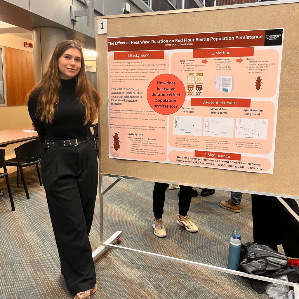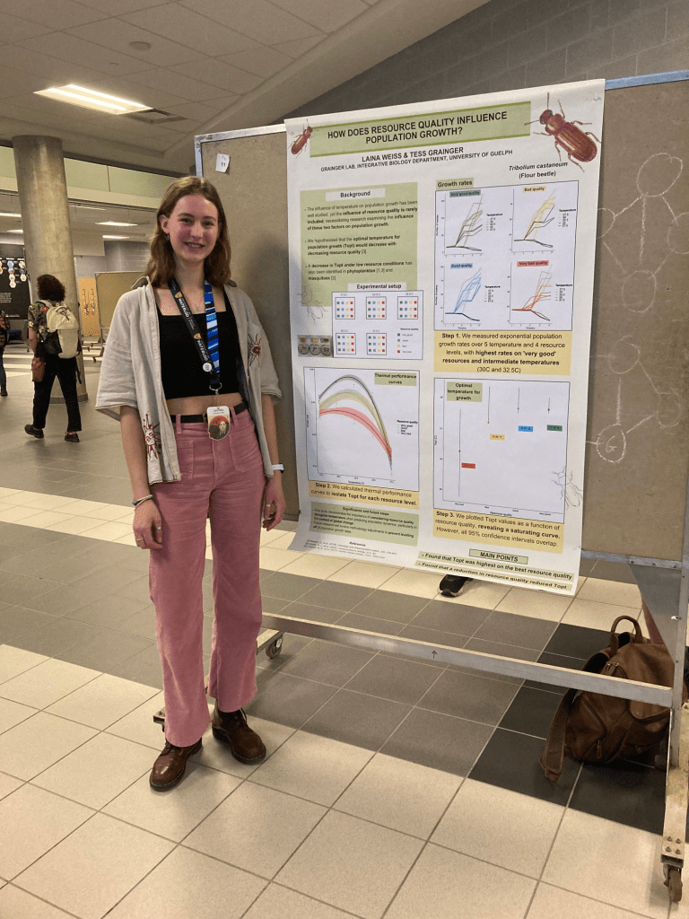 April 2024 – Laina presented her research on flour beetle thermal performance at the OE3C conference in Waterloo! Great job Laina!